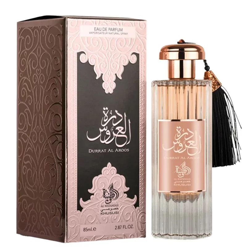 Durrat Al Aroos faz parte da linha Dubai de Al Wataniah. Originário dos Emirados Árabes Unidos, Al Wataniah nasceu do desejo de entregar ao mundo elegantes fragrâncias com um toque místico, sedutor e de alta qualidade. Possui perfumes que combinam as melhores notas francesas com notas orientais, desenvolvidos por perfumistas de renome em todo o mundo. Suas combinações exclusivas são intensas e cativantes, cativando os que se deixam seduzir por sua magia.